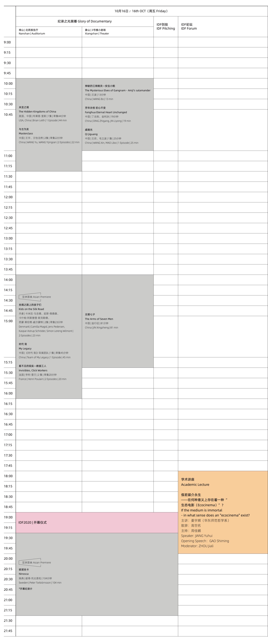 IDF·2020 | 西湖国际纪录片大会日程一览& 场馆分布图